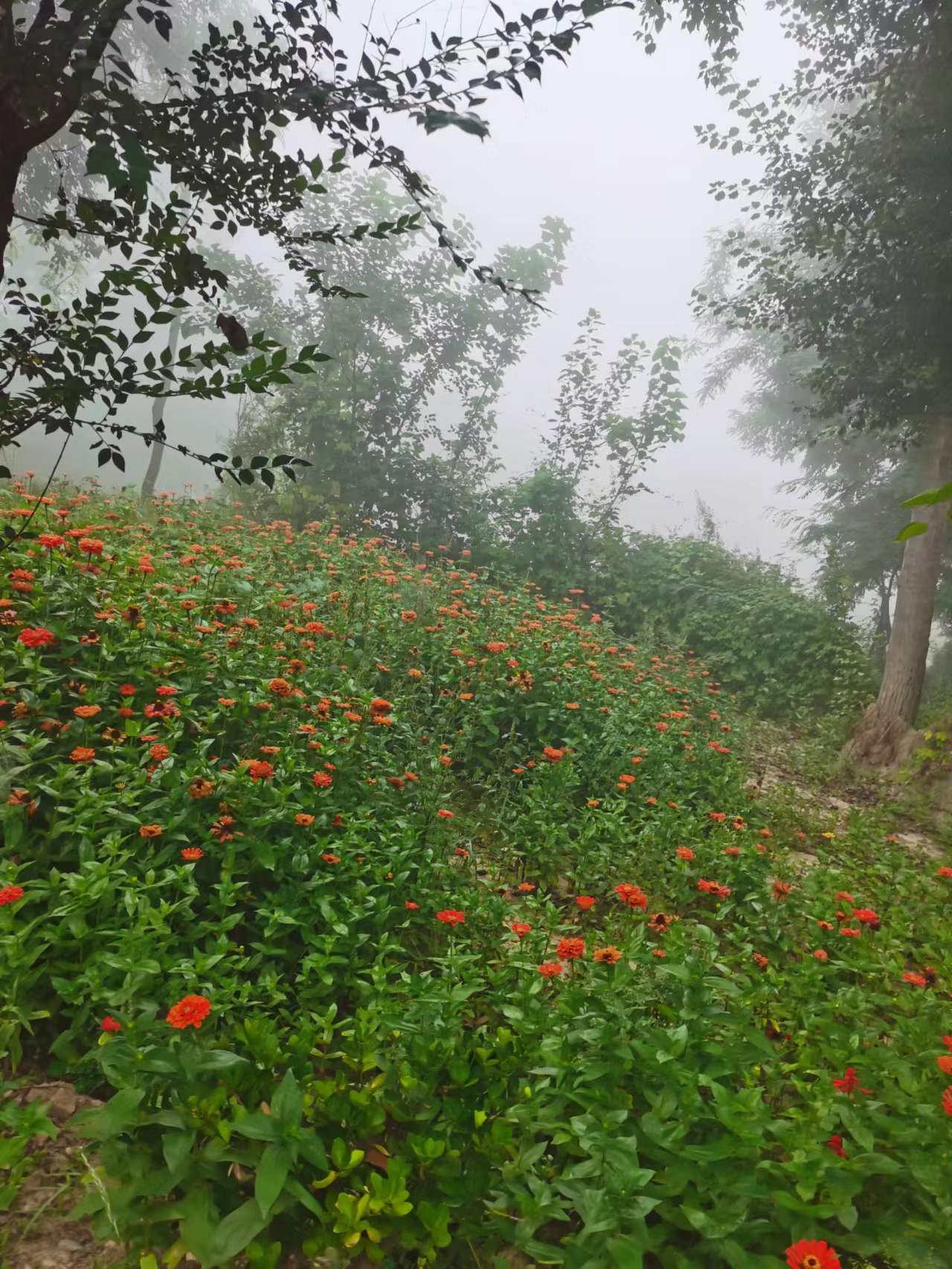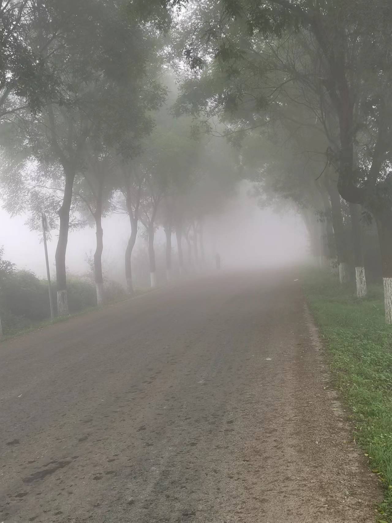 先一天下雨,下下停停成了连阴雨,连绵几天,空气中的湿度太大的时候,第二天雾就出现了,可见范围不到20米,宛如仙境。